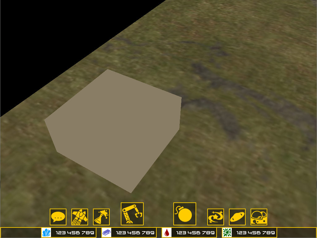 The base bar contains natural resources stored in the zone warehouse. In fact, this bar is the visible part of the iceberg. By clicking on a button (which is not here yet) or by typing a top secret hotkey (not defined yet), the warehouse opens and will show advanced informations :